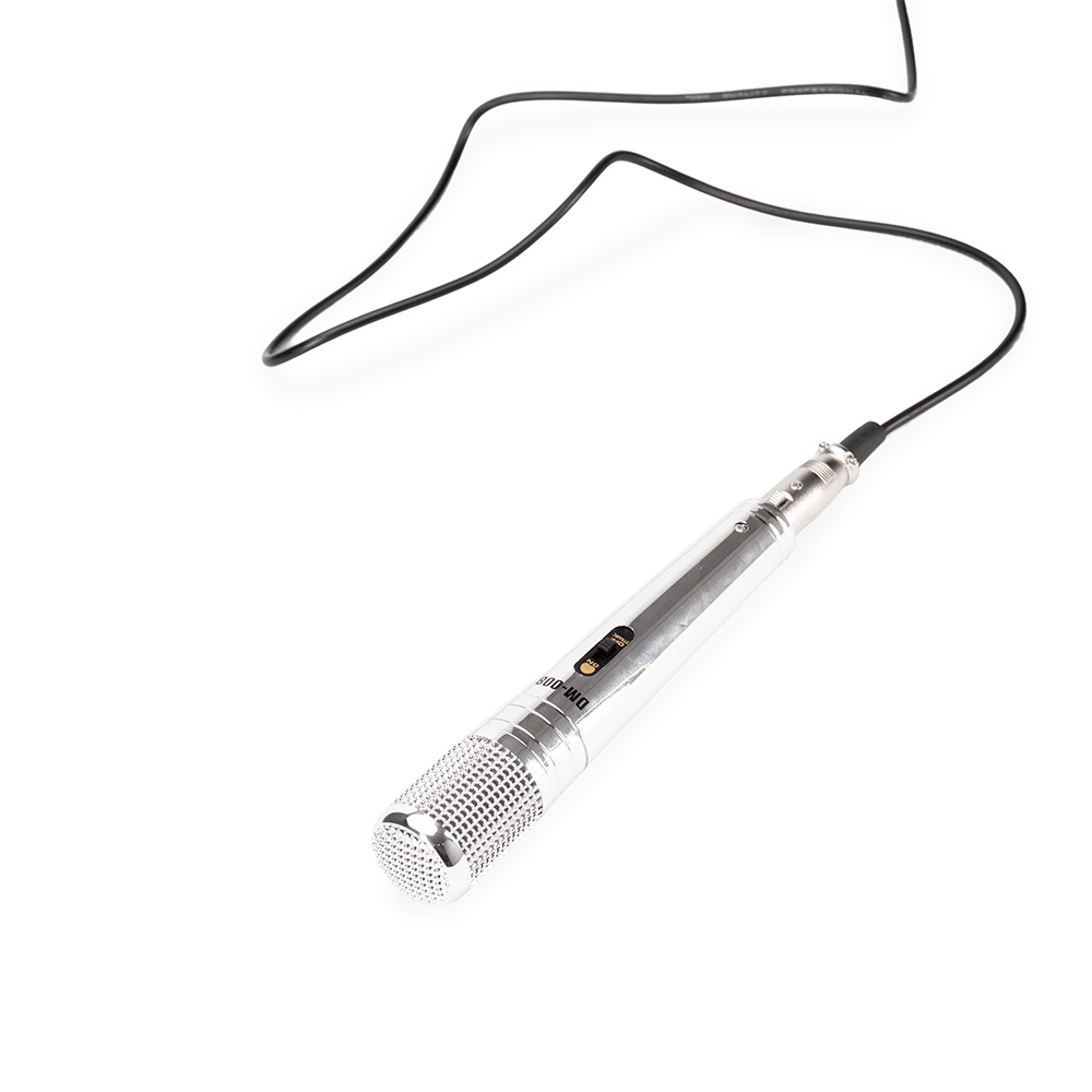 Microfone dinâmico unidirecional com estrutura leve em alumínio e malha de proteção metálica. Conta com chave liga/desliga na parte frontal. Acompanha cabo XLR-P10 com 4 metros de comprimento.