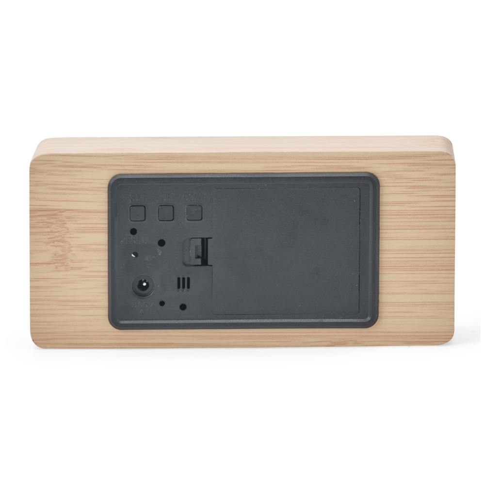 Este relógio despertador de madeira com painel de LED une, de forma harmoniosa, a tecnologia do display com o design requintado do corpo do aparelho. Com ele, é possível visualizar a hora certa, além de outras informações como data e temperatura ambiente. Apresenta, também, a opção de programar até três alarmes diferentes, definindo seus horários e frequências de ativação. Além disso, o relógio despertador pode ser ligado tanto através de 4 pilhas AAA (não acompanham o produto) quanto via cabo USB DC de 5V que acompanha o dispositivo.