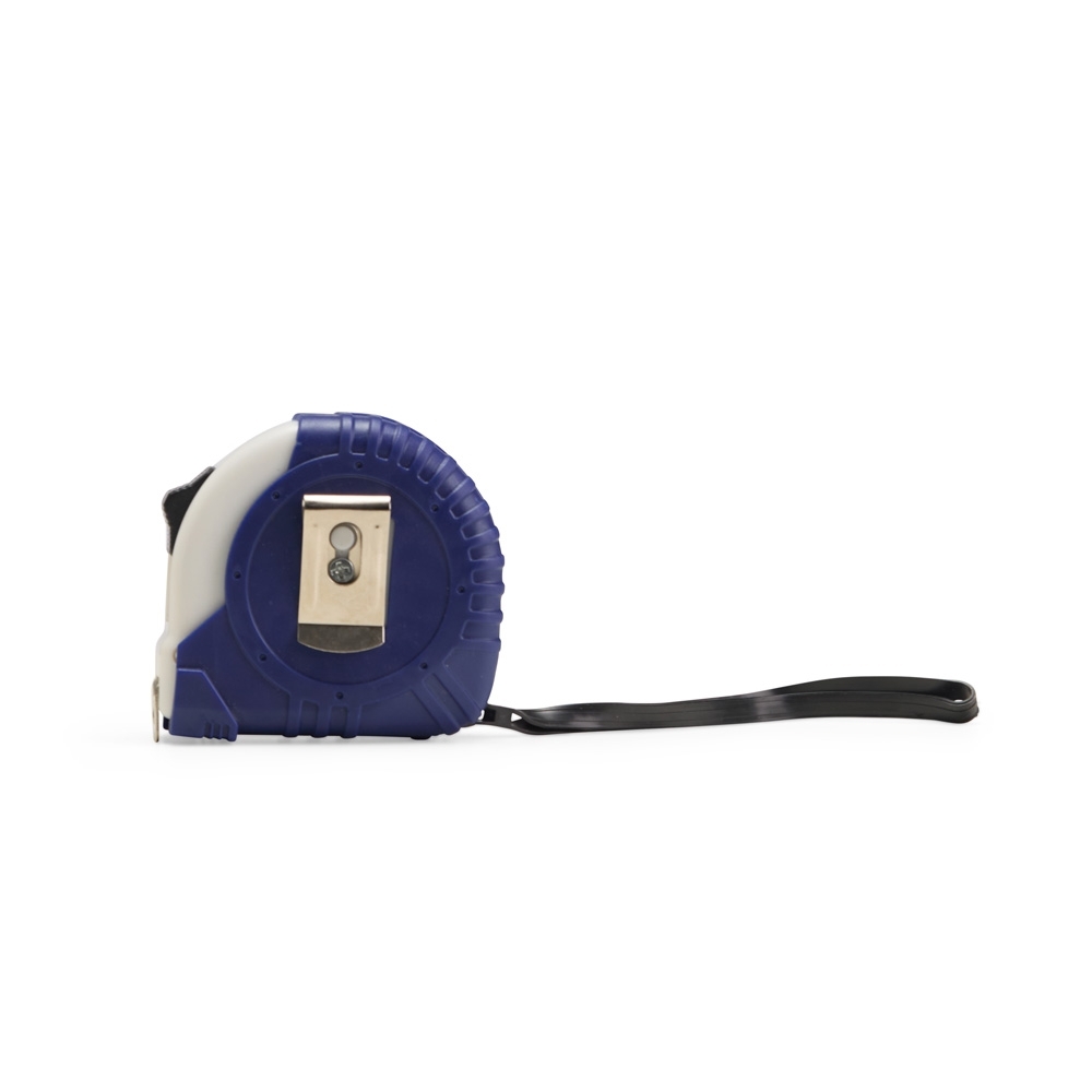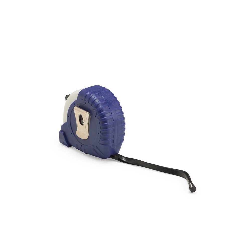 Trena emborrachada com presilha metálica e detalhes em plástico, incluindo alça para transporte. Conta com fita de medição com alcance máximo de 5 metros, exibindo também medidas em pés e polegadas. Possui ainda uma trava de segurança de fácil acionamento: basta deslizar que a fita é contida totalmente no ponto desejado.